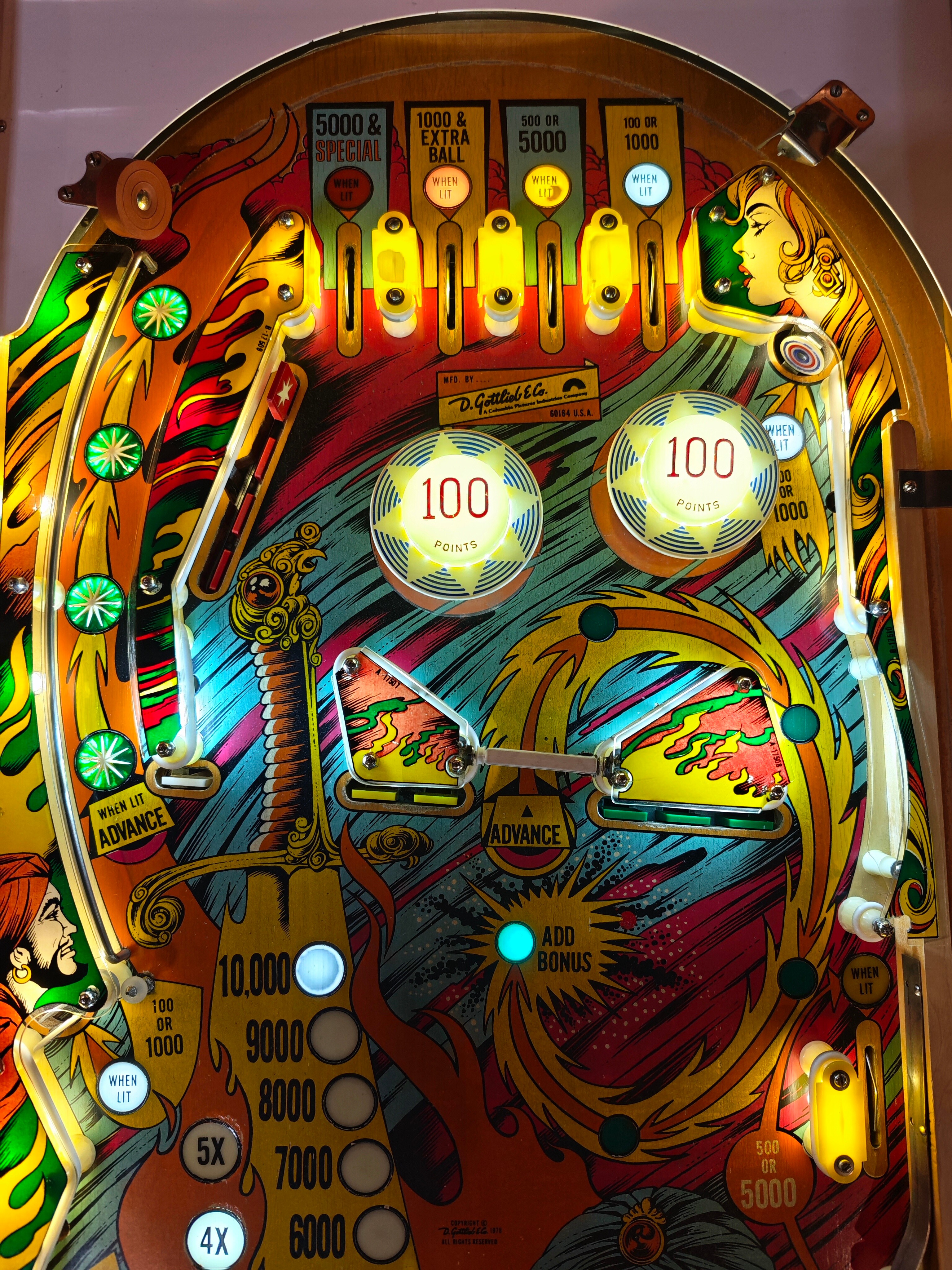 Poczuj klimat lat 70.! Sinbad to flipper dla każdego, kto lubi czystą zręczność i prostą, wciągającą zabawę. Idealny na imprezy w stylu retro.