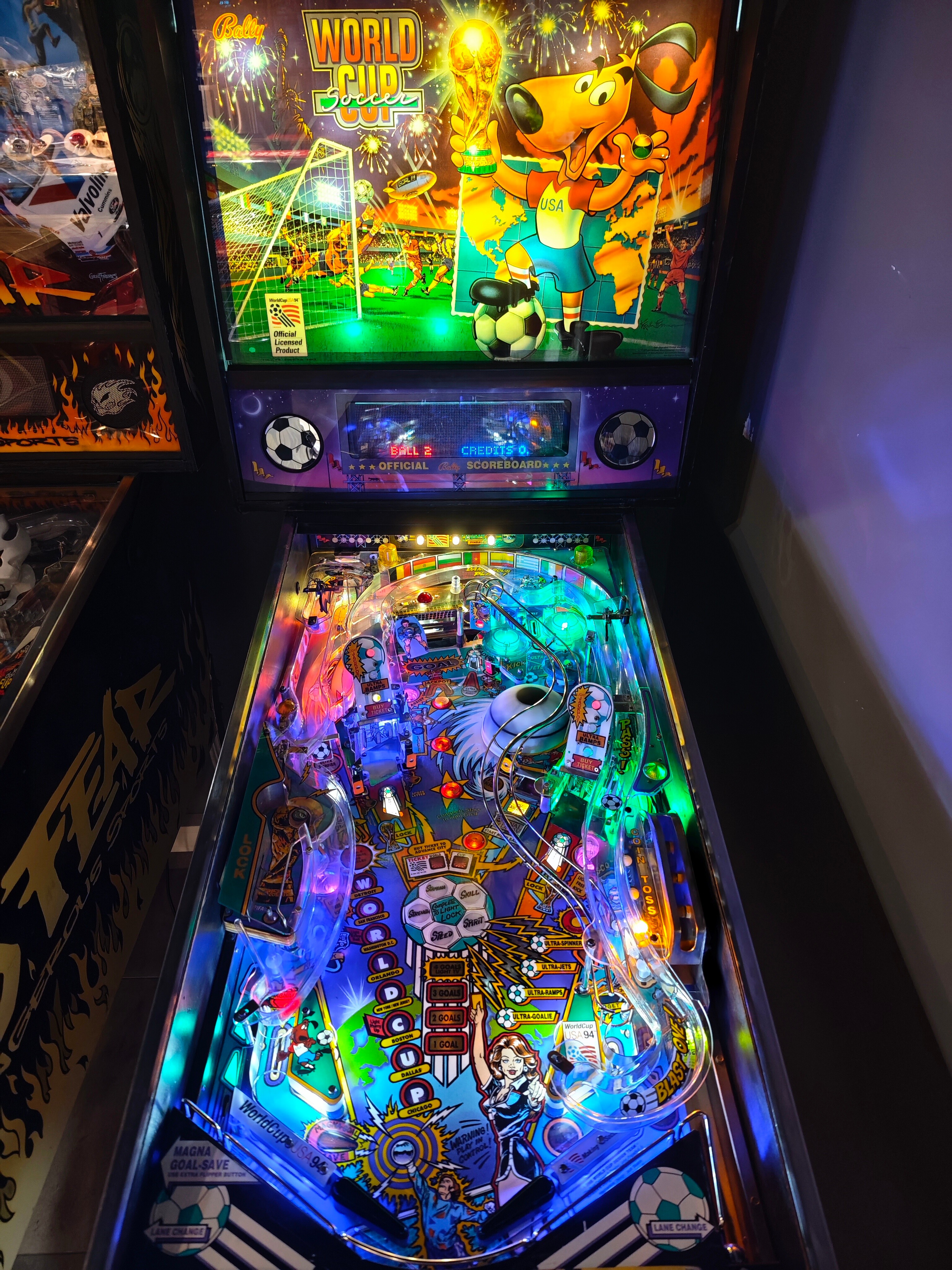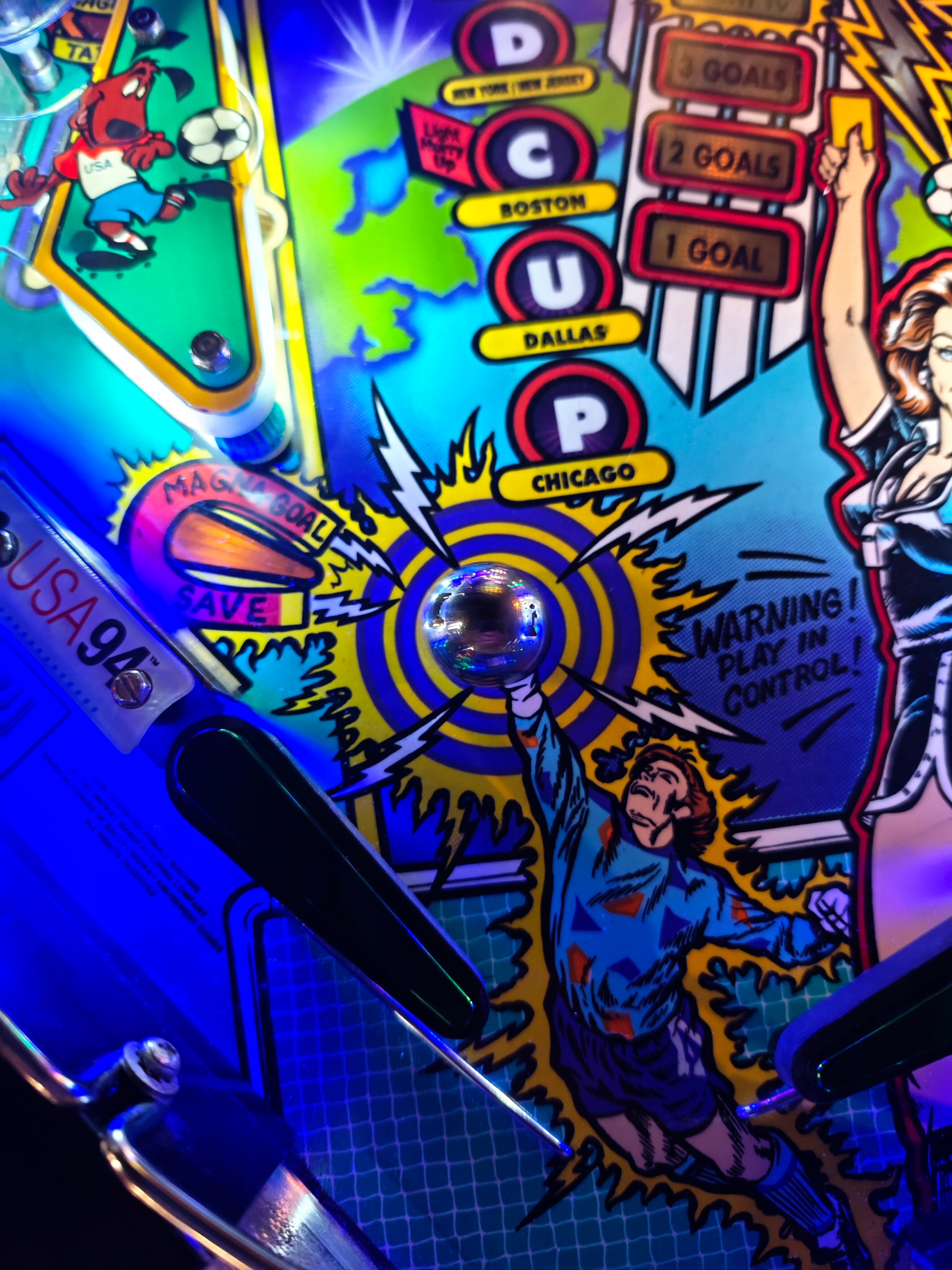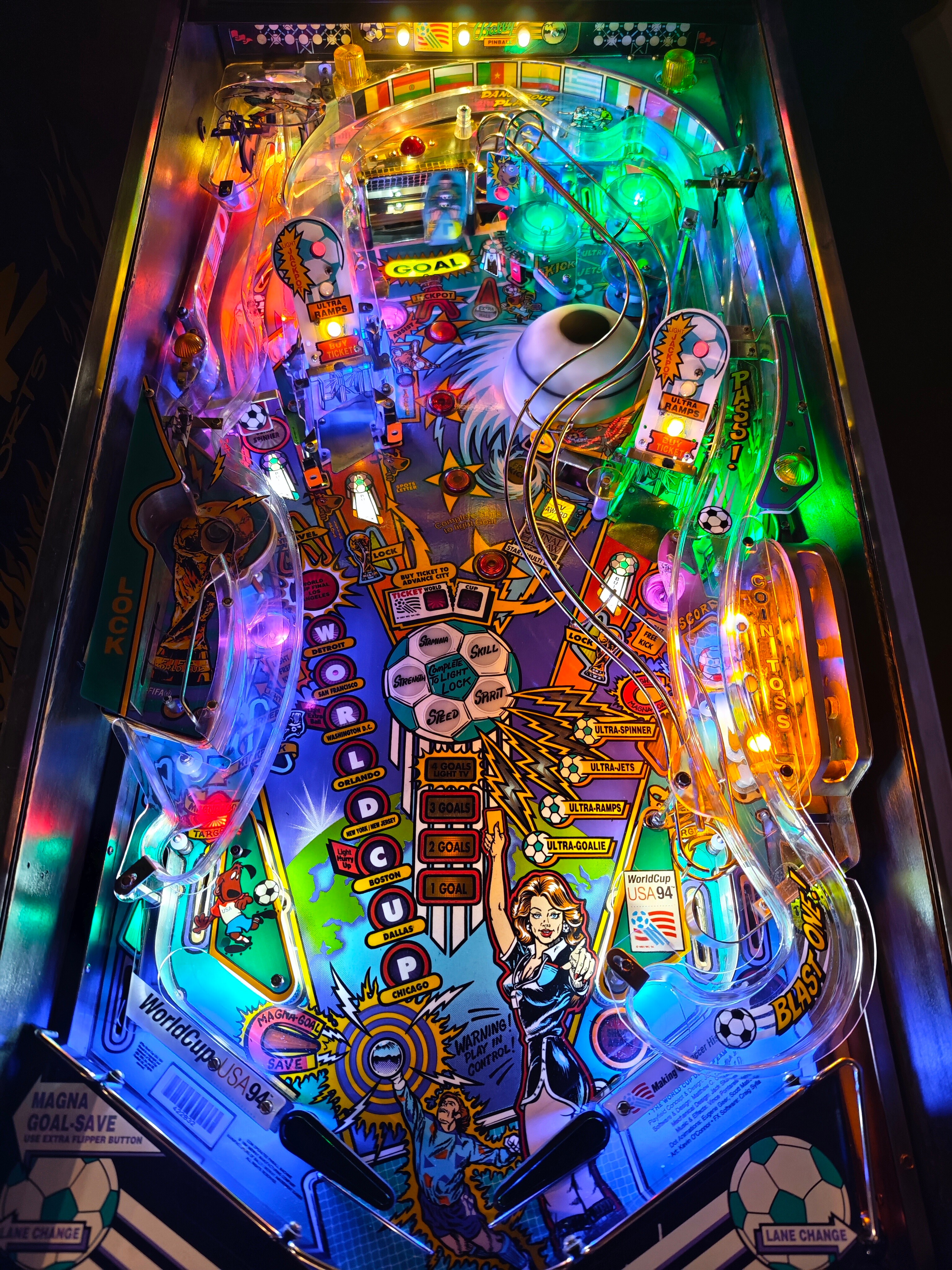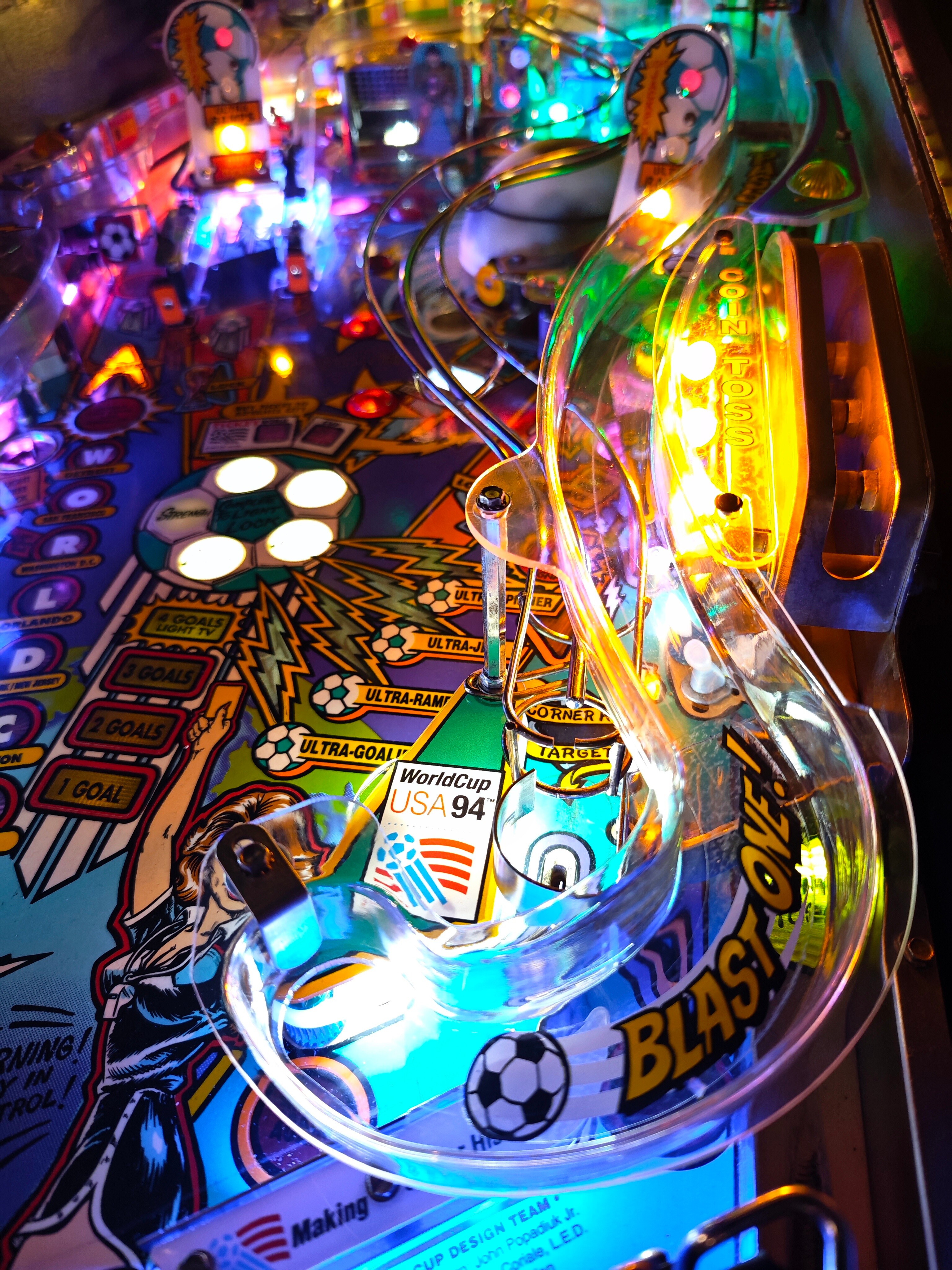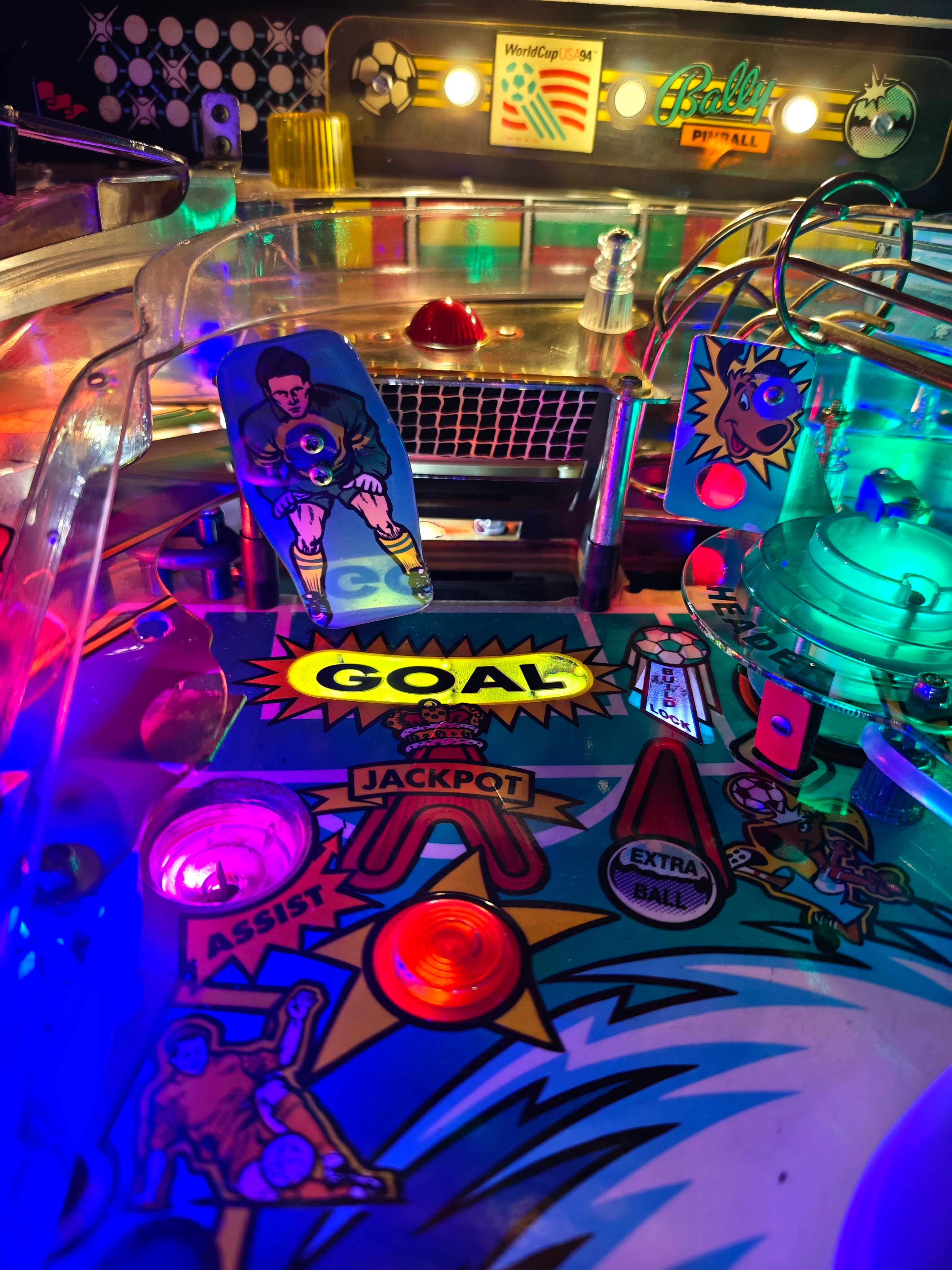 Flipper w piłkarskim klimacie - rampy, mini-boisko i bramka z bramkarzem zapewniają emocje każdemu fanowi futbolu.
